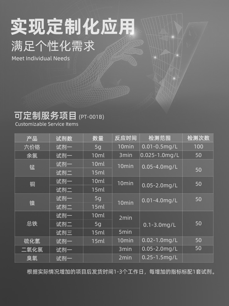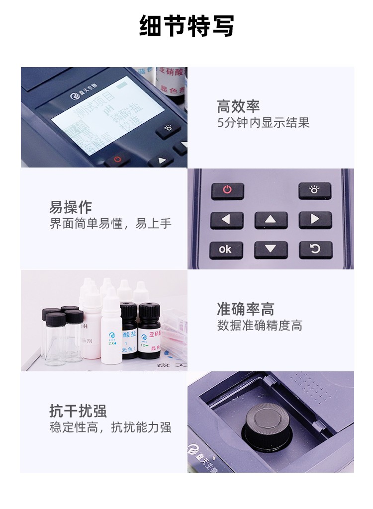 一款適用于工業(yè)污水、水產(chǎn)養(yǎng)殖等領(lǐng)域的檢測儀,配合檢測試劑,可“快速、簡單、準確、穩(wěn)定”進行測量,擁有精美的外觀造型,簡單的操作界面,準確的檢測系統(tǒng),幫助用戶獲得精細的數(shù)據(jù),可更準確、有效的分析水體狀況,提前預(yù)防養(yǎng)殖風險,及時避免損失。 數(shù)據(jù)準確,攜帶方便,檢測快速,操作簡單